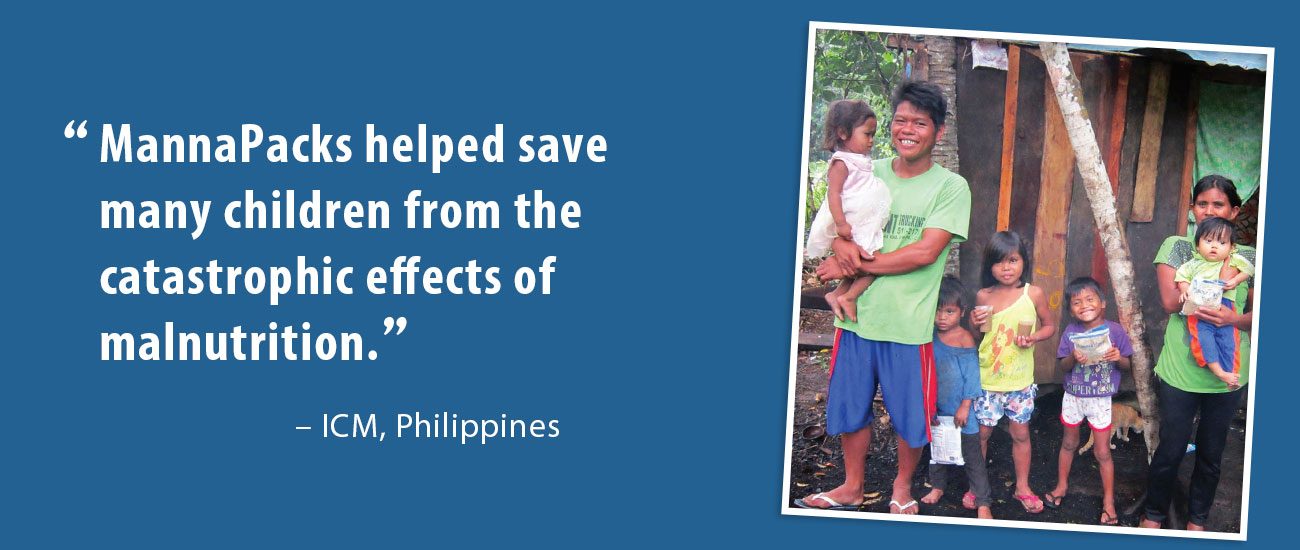 “MannaPacks helped save many children from the catastrophic effects of malnutrition.” – ICM, Philippines