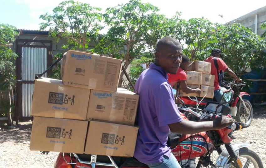 On a recent trip to Haiti, Feed My Starving Children staff and donors loaded a truck with MannaPack meals. The meals were originally shipped to our partner, Help for Haiti. That ministry receives FMSC meals and from there, sends meals to those who need it most -- including Hurricane Matthew survivors in Jeremie.
